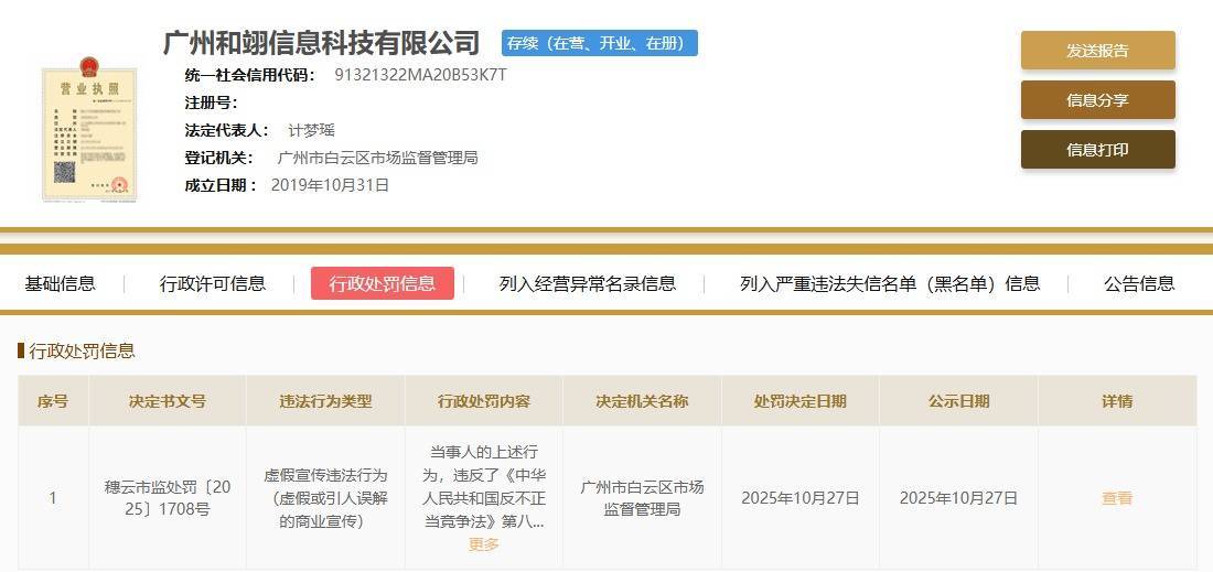 中国经济网北京11月6日讯(记者 马先震) 广州和翊信息科技有限公司近日收到广州市白云区市场监督管理局的行政处罚决定书(穗云市监处罚〔2025〕1708号)全电配资。